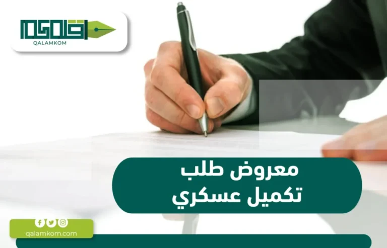 إذا كنت بحاجة إلى إعداد معروض طلب تكميل عسكري احترافي، فإن موقع قلمكم هو الخيار الأمثل لك! نحن نقدم لك خدمات كتابة معروضات دقيقة ومهنية تلبي جميع متطلبات الجهات العسكرية. يتم إعداد المعروضات بأسلوب قانوني ومهني يضمن لك تقديم طلبك بأعلى مستوى من الاحترافية. لا تدع أي تفاصيل مهمة تفوتك. احصل على معروضك بشكل سريع وبدقة عالية عبر موقع قلمكم.